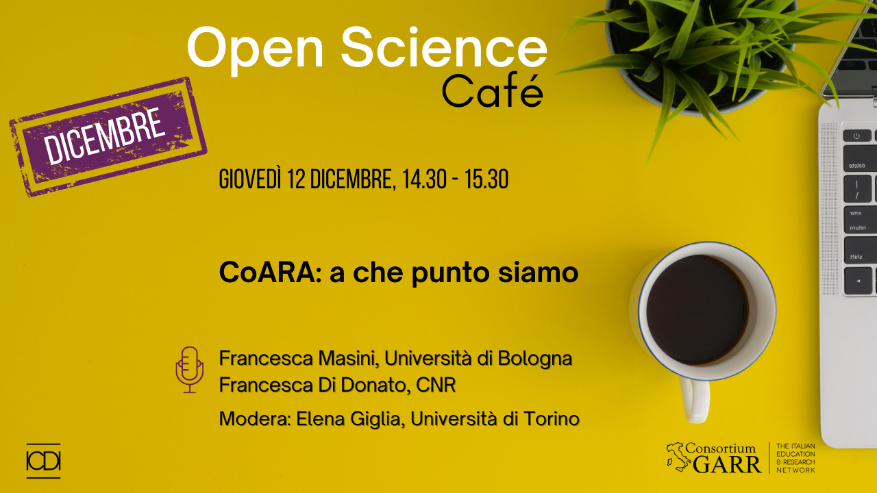 Giovedì 12 dicembre 2024, ore 14:30-15:30, Open Science Café con Francesca Masini, Francesca Di Donato e Elena Giglia