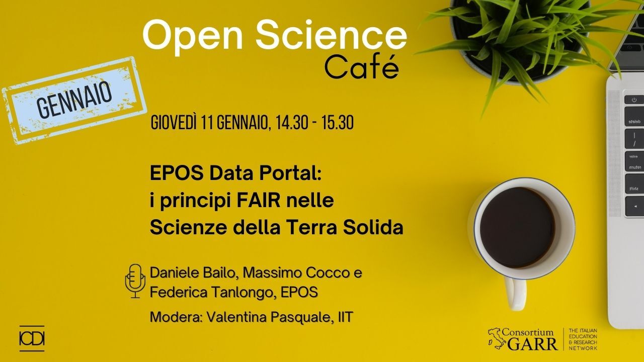Thursday, January 11, 2024, from 2:30 PM to 3:30 PM, Open Science Café with Daniele Bailo, Massimo Cocco, Federica Tanlongo, and Valentina Pasquale.